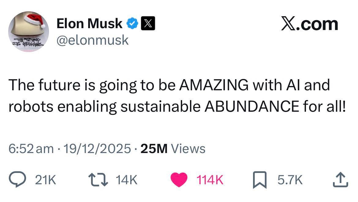 Musk’s framing is useful precisely because it does not pretend that abundance solves everything. It acknowledges that meaning remains a human project.